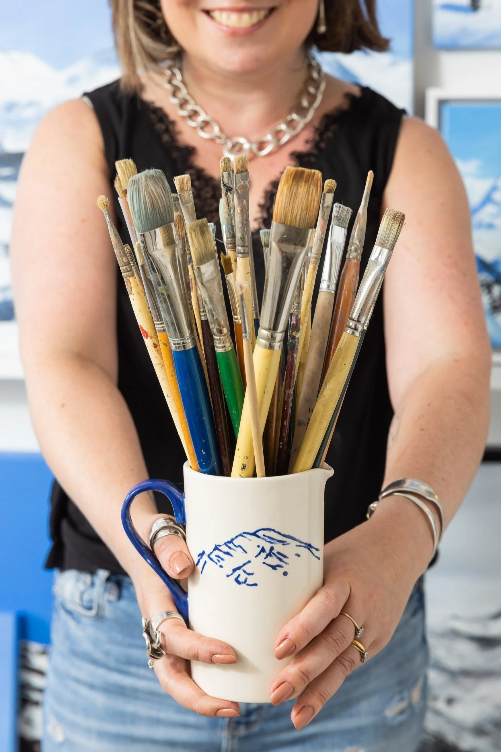 I had the pleasure of working with Alice after she got in contact to discuss a personal branding photoshoot to promote her mountain painting and new fine art prints and print products she was introducing. As it’s Alice’s ambition to paint and ski race full time, she was looking to up her profile and increase her visibility as a painter and realised that a personal branding photoshoot was just the place to start.